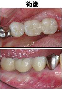 両隣の歯を削って支えにしてブリッジをかけた状態