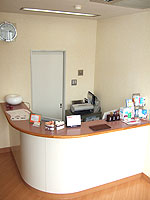 レセプションカウンターをイメージして作った受付です。患者様が次回のご予約を取られる時、お会計をされるときにも快適な空間を作ったつもりです。もちろん、患者様の心をも癒す応対にも力を入れております。